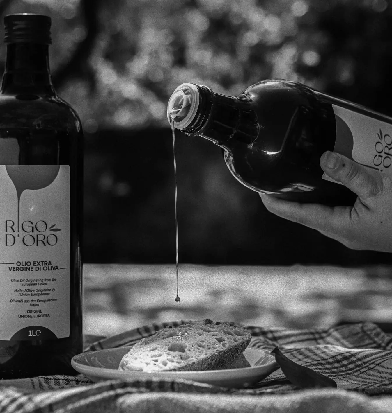 Abbiamo chiamato il nostro brand Rigo D’Oro pensando a un gesto semplice: quel filo sottile d’olio che scende lento quando lo versi.